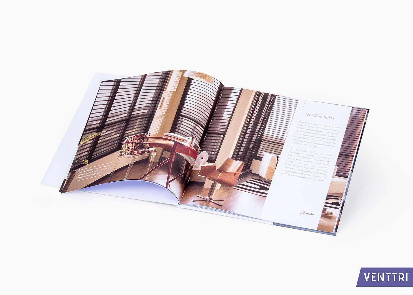 For Zonnelux, we developed a robust and stylish inspiration book that is not only durable but also radiates luxury. The binder is made from 4 mm board, fully wrapped in linen and finished on the inside with black paper for a sleek and timeless appearance.